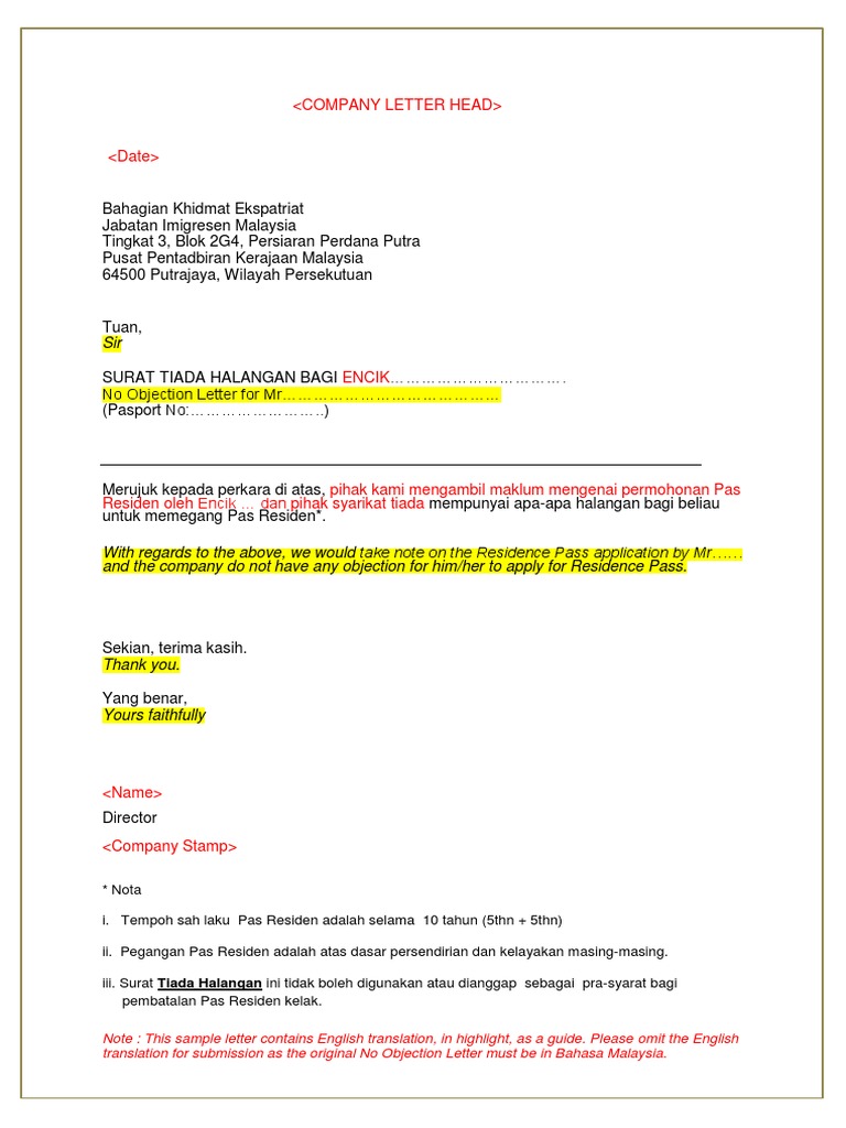 Tiada Halangan Terhadap Permohonan In English Halangblog