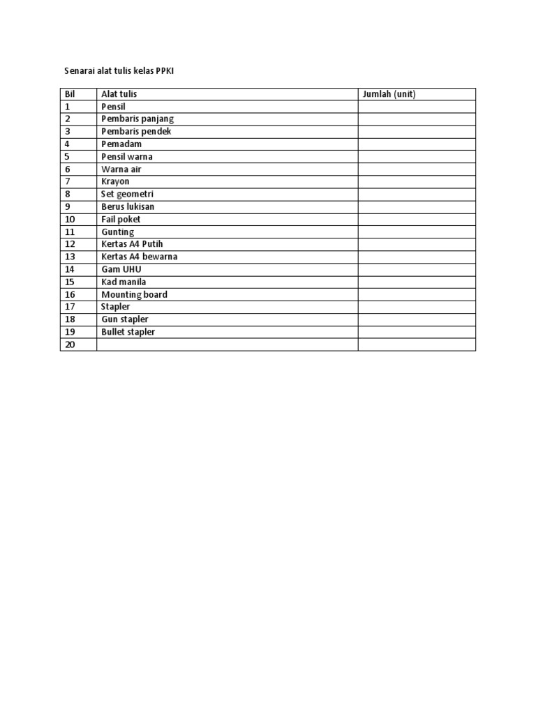Senarai Alat Tulis Kelas Ppki Pdf